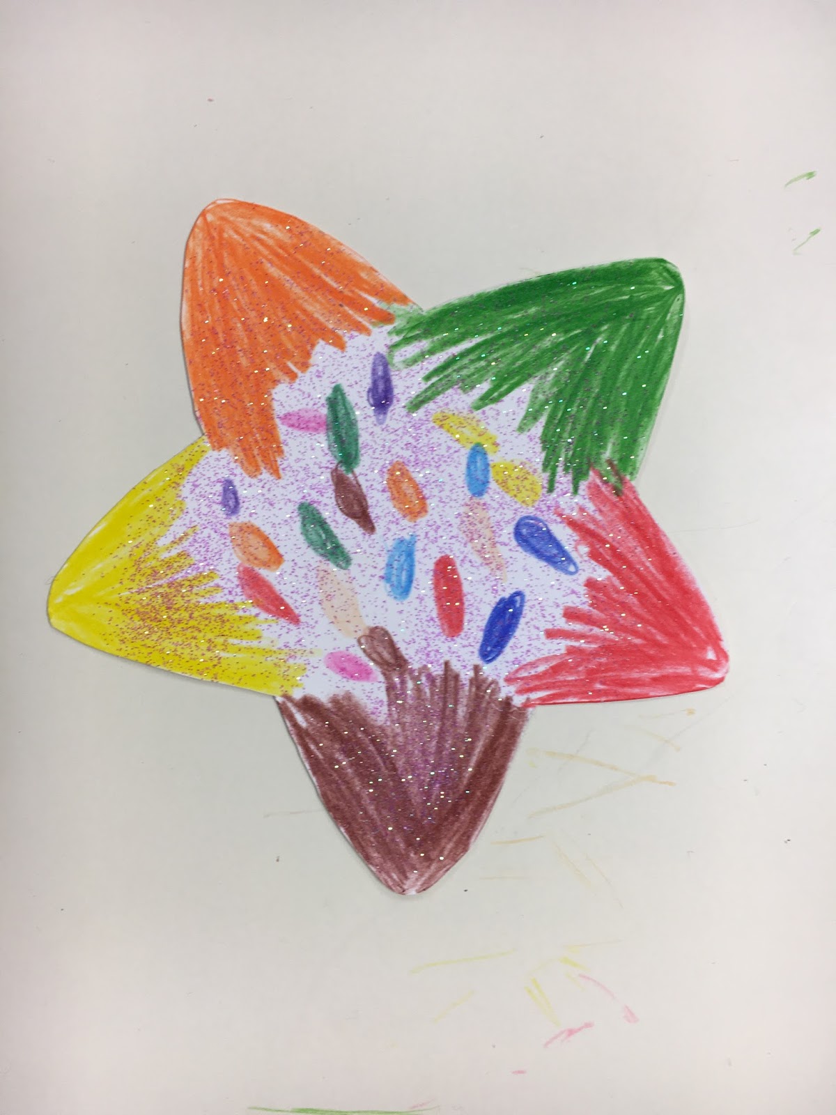 Depois de falarem das histórias foi lançado o desafio de cada criança fazer a sua "amiga estrela", dando asas à imaginação e criatividade. No fim, todas as estrelas levaram um banho de purpurinas...- porque estrela que se preze tem que ter brilho!!