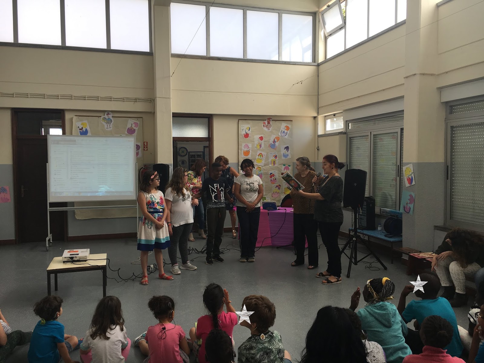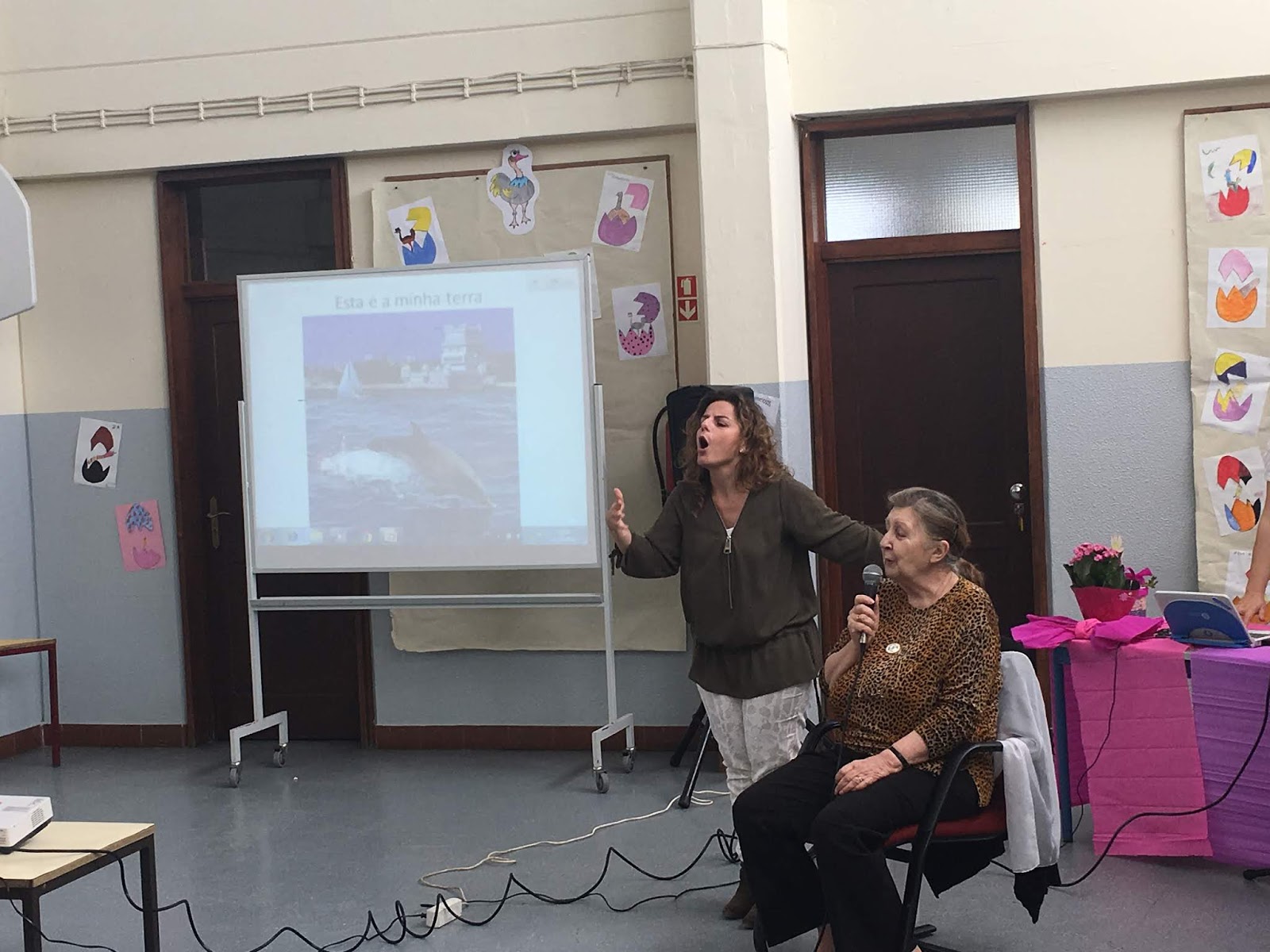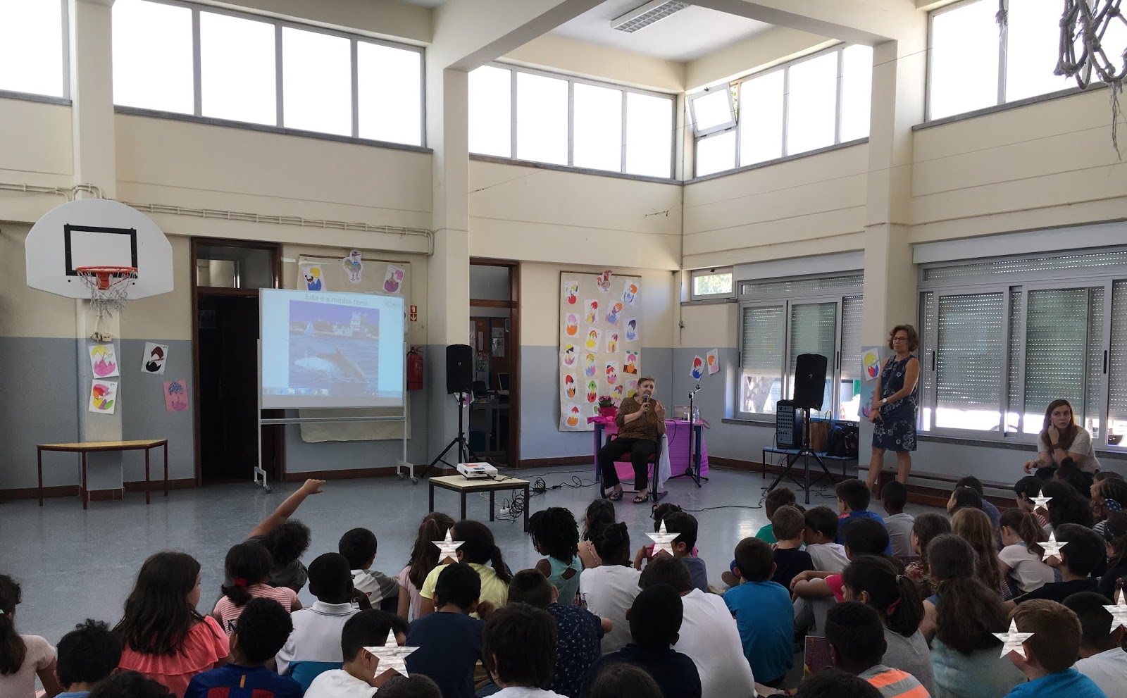 Foi também essenvial o trabalho das intérpretes de LGP, assegurando assim a passagem para os alunos da EREB.