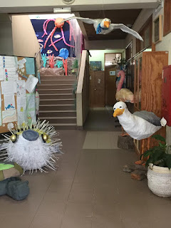 Foi hoje finalizada a decoração alusiva ao mar que conta com o contributo de trabalhos elaborados, propositadamente para este espaço, por alunos de turmas do 2º Ciclo (profª Leocádia Lemos).
