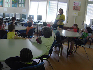 A professora bibliotecária participou hoje no Dia das Profissões na sala amarela e sala laranja do Pré- Escolar da EB 1º C JI Foros da Amora. A professora começou por perguntar aos alunos o que era para eles uma biblioteca, o que se pode fazer e que bibliotecas já visitaram.
