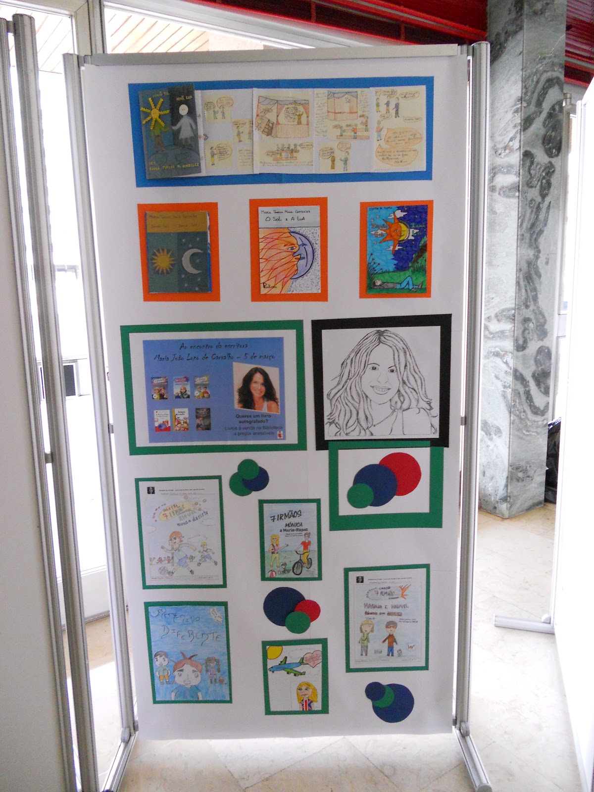 Terminou hoje a exposição "Encontros com Leituras e Meios de Expressão" do Agrupamento, organizada pela Equipa do Centro de Recursos, que decorreu entre 17 e 30 de abril no espaço DRELVT.