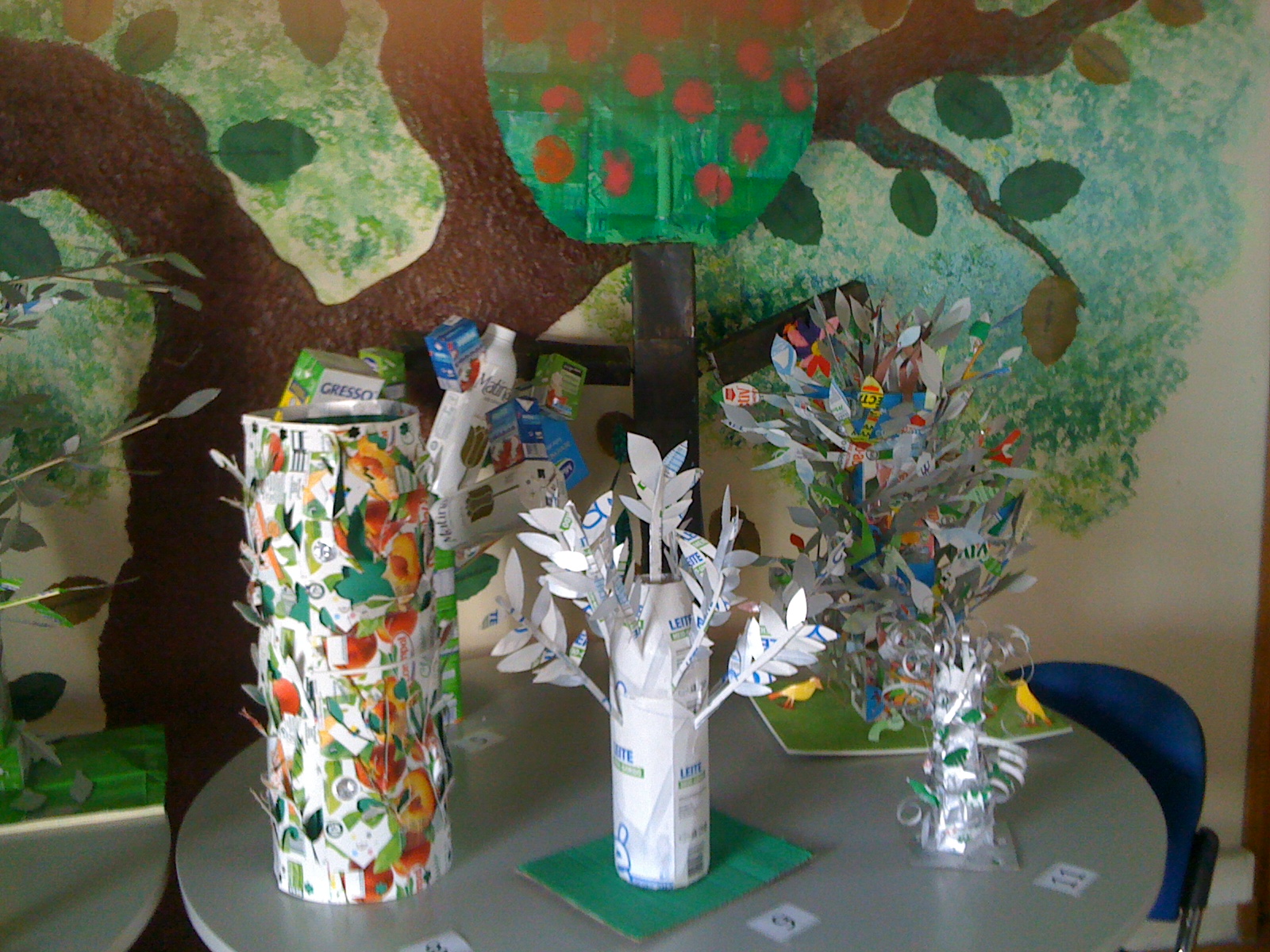 No final, numa tela pintada pelas duas professoras de EVT que retratavam os vários cenários em que se desenrola a ação do livro (quinta, jardim zoológico, jardim e lago) os alunos associaram os animais que pintaram aos locais de origem.