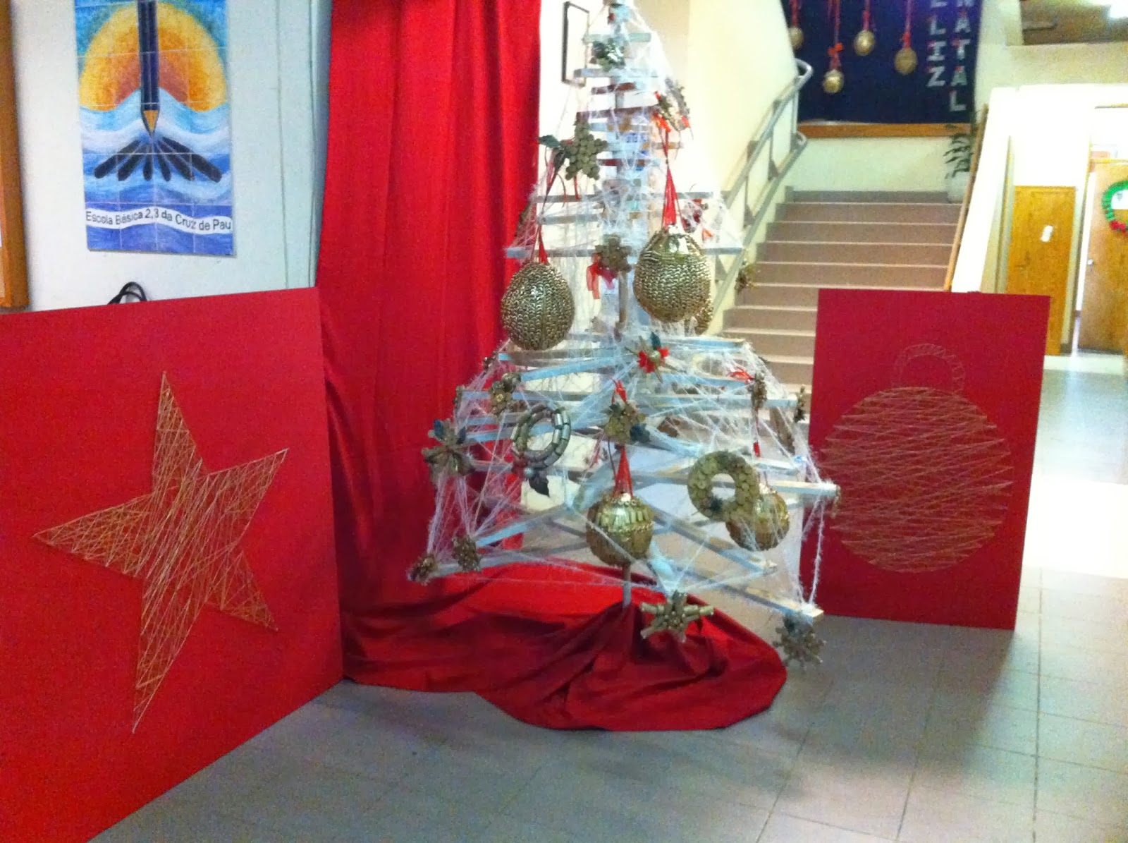 A nossa Escola está mais bonita! Este ano, a Árvore de Natal que decora a entrada do átrio do bloco A ainda surpreende mais...pela criatividade e elegância.